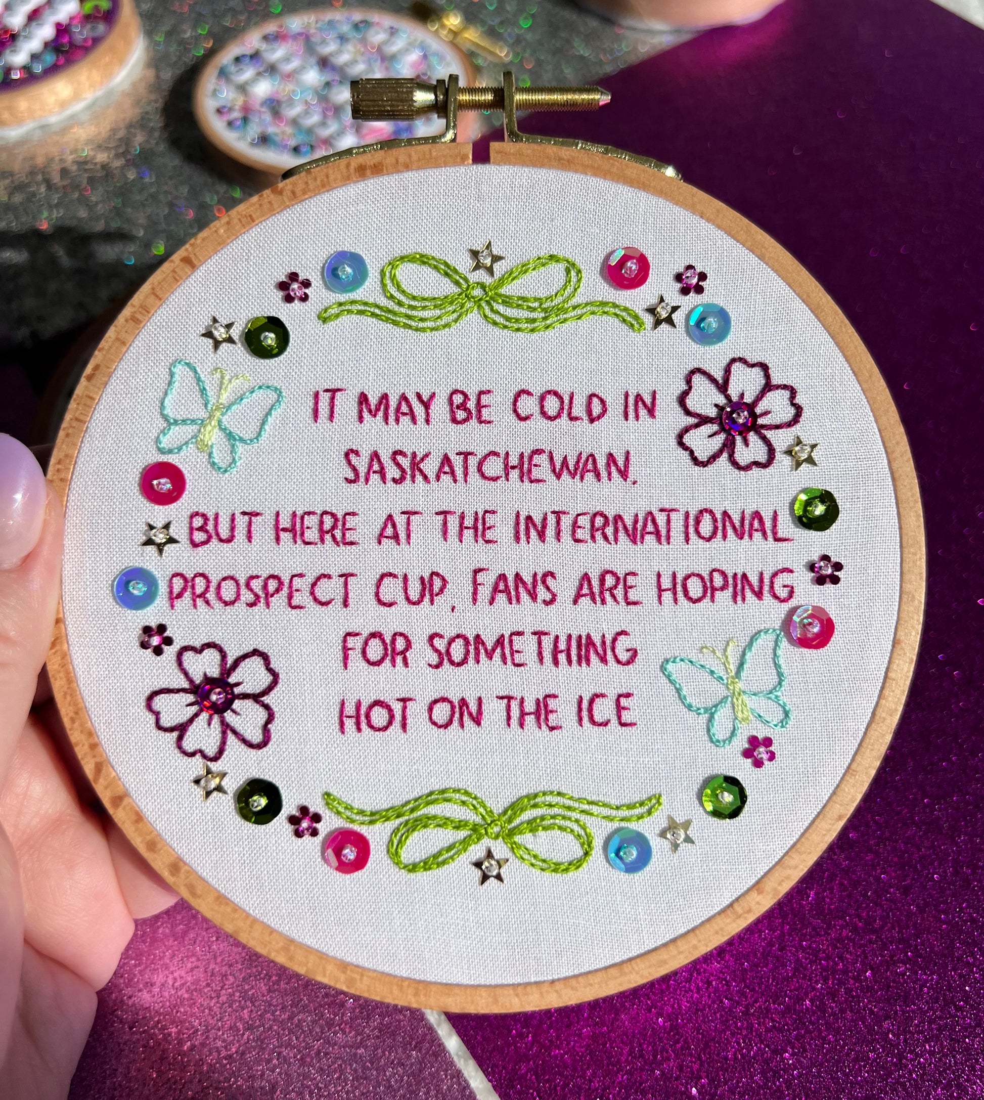 Hot on the Ice Hand Embroidered Decor in 5 inch Wooden Hoop